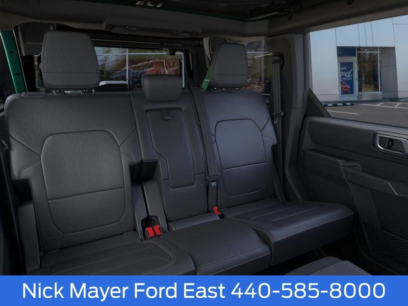 Nick Mayer Ford East Wickliffe is proud to offer this attractive 2025 Ford Bronco in Green Metallic This vehicle has been thoroughly inspected, ready to take home, and comes with the following features; Equipment Group 332A Mid Package (2-Door Intelligent Access w/Lock/Unlock, Ambient Footwell Lighting, Connected Navigation, Dr & Pass Illuminated Sliding Visor Vanity Mirrors, Dual Smart Charging USB Ports, Dual-Zone Electronic Automatic Temperature Control, Front Row Heated Seats, Power Outlet - Back Side of Center Floor Console, and Rear Parking Sensors), 4-Wheel Disc Brakes, 4.7 Axle Ratio, 7 Speakers, ABS brakes, Air Conditioning, Alloy wheels, AM/FM radio: SiriusXM with 360L, AM/FM Stereo, Auto High-Beam Headlamps, Auto High-beam Headlights, Auto-dimming Rear-View mirror, BLIS Blind Spot Information System, Brake assist, Carbonized Gray Molded-In-Color Hard Top, Compass, Delay-off headlights, Door Storage Bags, Driver door bin, Driver vanity mirror, Dual front impact airbags, Dual front side impact airbags, Electronic Stability Control, Emergency communication system: 911 Assist, Exterior Parking Camera Rear, Front anti-roll bar, Front Bucket Seats, Front Center Armrest, Front fog lights, Front reading lights, Front wheel independent suspension, Fully automatic headlights, Heated door mirrors, Heated front seats, Heated steering wheel, Illuminated entry, Integrated roll-over protection, Internet access capable: FordPass Connect, Lane-Keeping System, Leather Shift Knob, Low tire pressure warning, Marine Grade Vinyl Heated Bucket Seats, Occupant sensing airbag, Outside temperature display, Overhead airbag, Overhead console, Panic alarm, Passenger door bin, Passenger vanity mirror, Power door mirrors, Power steering, Power windows, Pre-Collision Assist w/Automatic Emergency Braking, Radio data system, Raptor-Style Running Board, Rear-View Camera, Rear-Window Defroster & Washer, Remote keyless entry, Security system, SiriusXM w/360L, Speed control, Split folding rear seat, Steering wheel mounted audio controls, SYNC 4, Tachometer, Telescoping steering wheel, Tilt steering wheel, Traction control, Trip computer, Variably intermittent wipers, Voltmeter, and Wheels: 17 Carbonized Gray-Painted Aluminum.