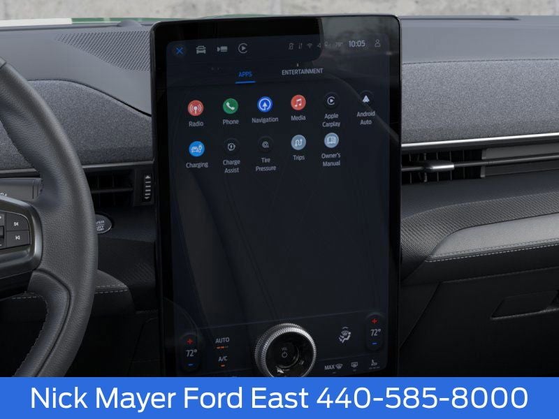 Nick Mayer Ford East Wickliffe is proud to offer this fantastic 2025 Ford Mustang Mach-E in Green Metallic This vehicle has been thoroughly inspected, ready to take home, and comes with the following features; Equipment Group 300A Standard Package, 10 Speakers, 4-Wheel Disc Brakes, ABS brakes, Air Conditioning, Alloy wheels, AM/FM radio: SiriusXM with 360L, Apple CarPlay/Android Auto, Auto High-beam Headlights, Auto-dimming Rear-View mirror, Automatic temperature control, Brake assist, Bumpers: body-color, Compass, Delay-off headlights, Driver door bin, Driver vanity mirror, Dual front impact airbags, Dual front side impact airbags, Electronic Stability Control, Emergency communication system: 911 Assist, Exterior Parking Camera Rear, Four wheel independent suspension, Front anti-roll bar, Front Bucket Seats, Front Center Armrest, Front dual zone A/C, Front reading lights, Fully automatic headlights, Garage door transmitter, Heated door mirrors, Heated front seats, Heated steering wheel, Heated/Ventilated Perforated ActiveX Bucket Seats, Illuminated entry, Internet access capable: FordPass Connect, Knee airbag, Low tire pressure warning, Memory seat, Mobile Power Cord (120V/240V), Navigation system: Connected Navigation, Occupant sensing airbag, Outside temperature display, Overhead airbag, Overhead console, Panic alarm, Panoramic Fixed-Glass Roof, Passenger door bin, Passenger vanity mirror, Power door mirrors, Power driver seat, Power Liftgate, Power passenger seat, Power steering, Power windows, Radio data system, Radio: B&O Sound System by Bang & Olufsen, Rain sensing wipers, Rear anti-roll bar, Rear seat center armrest, Rear side impact airbag, Rear window defroster, Rear window wiper, Remote keyless entry, Security system, SiriusXM w/360L, Speed control, Speed-sensing steering, Speed-Sensitive Wipers, Split folding rear seat, Spoiler, Steering wheel mounted audio controls, SYNC 4A w/Enhanced Voice Recognition, Telescoping steering wheel, Tilt steering wheel, Traction control, Trip computer, Turn signal indicator mirrors, Variably intermittent wipers, Ventilated front seats, and Wheels: 19 Bright Machined-Face Aluminum.