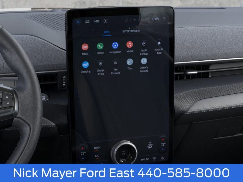 Nick Mayer Ford East Wickliffe is proud to offer this wonderful-looking 2025 Ford Mustang Mach-E in Shadow Black This vehicle has been thoroughly inspected, ready to take home, and comes with the following features; Equipment Group 300A Standard Package, 10 Speakers, 4-Wheel Disc Brakes, ABS brakes, Air Conditioning, Alloy wheels, AM/FM radio: SiriusXM with 360L, Apple CarPlay/Android Auto, Auto High-beam Headlights, Auto-dimming Rear-View mirror, Automatic temperature control, Brake assist, Bumpers: body-color, Compass, Delay-off headlights, Driver door bin, Driver vanity mirror, Dual front impact airbags, Dual front side impact airbags, Electronic Stability Control, Emergency communication system: 911 Assist, Exterior Parking Camera Rear, Four wheel independent suspension, Front anti-roll bar, Front Bucket Seats, Front Center Armrest, Front dual zone A/C, Front reading lights, Fully automatic headlights, Garage door transmitter, Heated door mirrors, Heated front seats, Heated steering wheel, Heated/Ventilated Perforated ActiveX Bucket Seats, Illuminated entry, Internet access capable: FordPass Connect, Knee airbag, Low tire pressure warning, Memory seat, Mobile Power Cord (120V/240V), Navigation system: Connected Navigation, Occupant sensing airbag, Outside temperature display, Overhead airbag, Overhead console, Panic alarm, Panoramic Fixed-Glass Roof, Passenger door bin, Passenger vanity mirror, Power door mirrors, Power driver seat, Power Liftgate, Power passenger seat, Power steering, Power windows, Radio data system, Radio: B&O Sound System by Bang & Olufsen, Rain sensing wipers, Rear anti-roll bar, Rear seat center armrest, Rear side impact airbag, Rear window defroster, Rear window wiper, Remote keyless entry, Security system, SiriusXM w/360L, Speed control, Speed-sensing steering, Speed-Sensitive Wipers, Split folding rear seat, Spoiler, Steering wheel mounted audio controls, SYNC 4A w/Enhanced Voice Recognition, Telescoping steering wheel, Tilt steering wheel, Traction control, Trip computer, Turn signal indicator mirrors, Variably intermittent wipers, Ventilated front seats, and Wheels: 19 Bright Machined-Face Aluminum.
