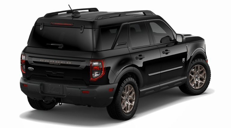 Boasting a bold, black exterior complemented by the painted Shadow Black roof, this Bronco Sport is sure to turn heads wherever you go. The front brush guard and steel skid plates offer added protection, while the 17-inch Sinister Bronze-Painted Aluminum wheels and all-terrain tires provide the traction and capability you demand.