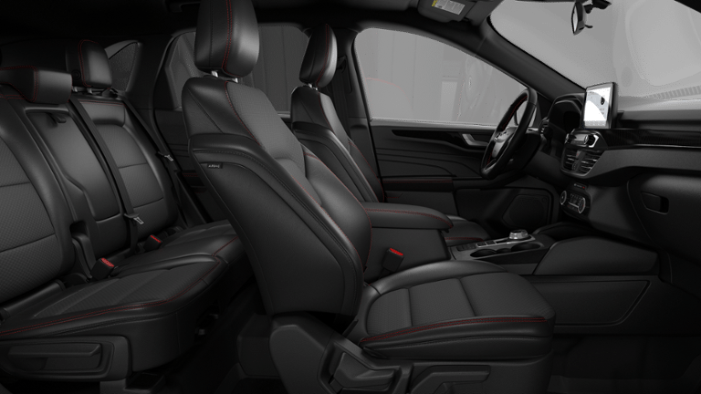 The Escape ST-Line's interior is designed with your comfort and convenience in mind. Indulge in the premium Partial Vinyl/Cloth Front Sport Contour Bucket Seats with Red Stitching, which provide exceptional support and style. Stay connected with the advanced SYNC 4 infotainment system, featuring a host of intuitive features and seamless smartphone integration.