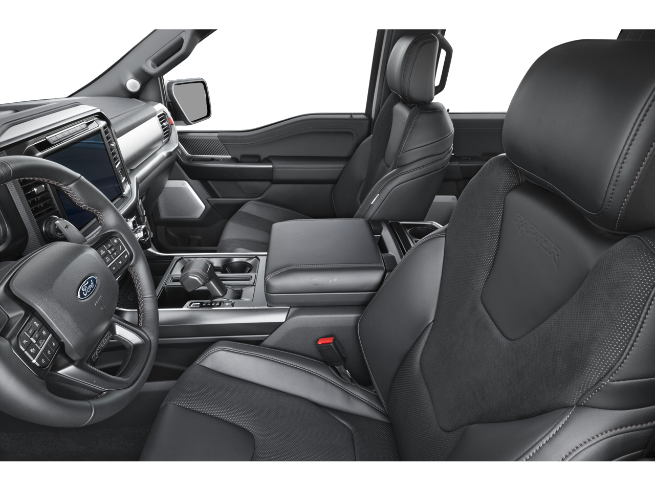 The interior of the Raptor is equally impressive, with RECARO Unique Leather Front Seats, Carbon Fiber Interior Appliques, and a Twin Panel Moonroof that floods the cabin with natural light. The SYNC 4 system with Enhanced Voice Recognition keeps you connected and in control, while the 14-speaker B&O sound system delivers an immersive audio experience.