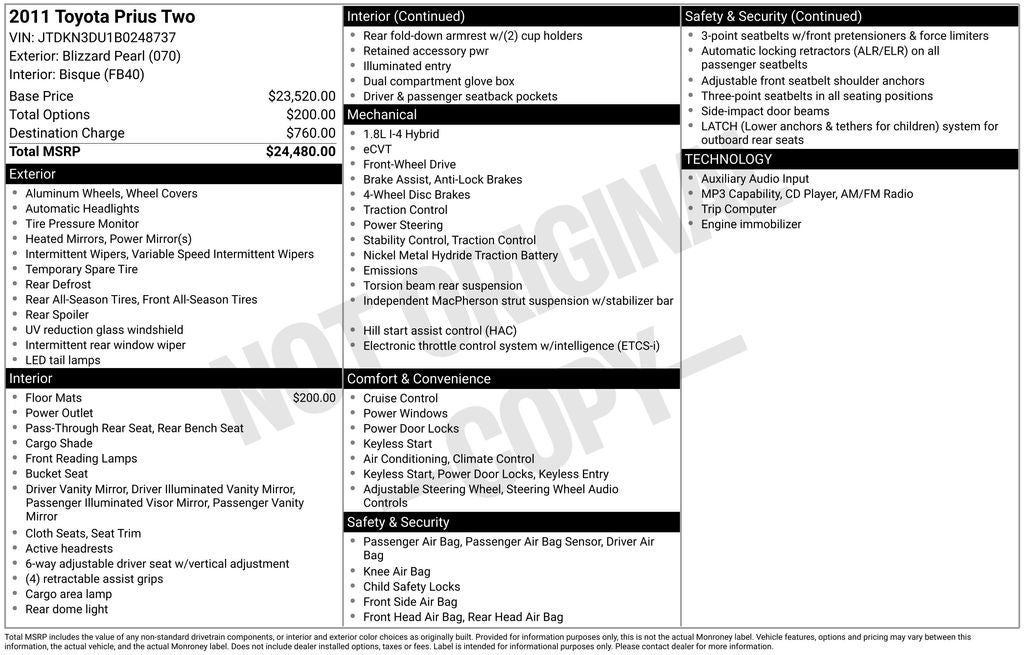 1.8L 4-Cylinder DOHC 16V VVT-i, ABS brakes, Alloy wheels, Electronic Stability Control, Heated door mirrors, Illuminated entry, Low tire pressure warning, Remote keyless entry, Traction control.