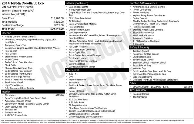 With its sleek, modern styling and impressive fuel efficiency, the 2014 Toyota Corolla LE ECO is the perfect blend of form and function. Whether you're commuting to work, running errands, or embarking on a road trip, this Corolla will exceed your expectations and provide a driving experience that is both enjoyable and economical.