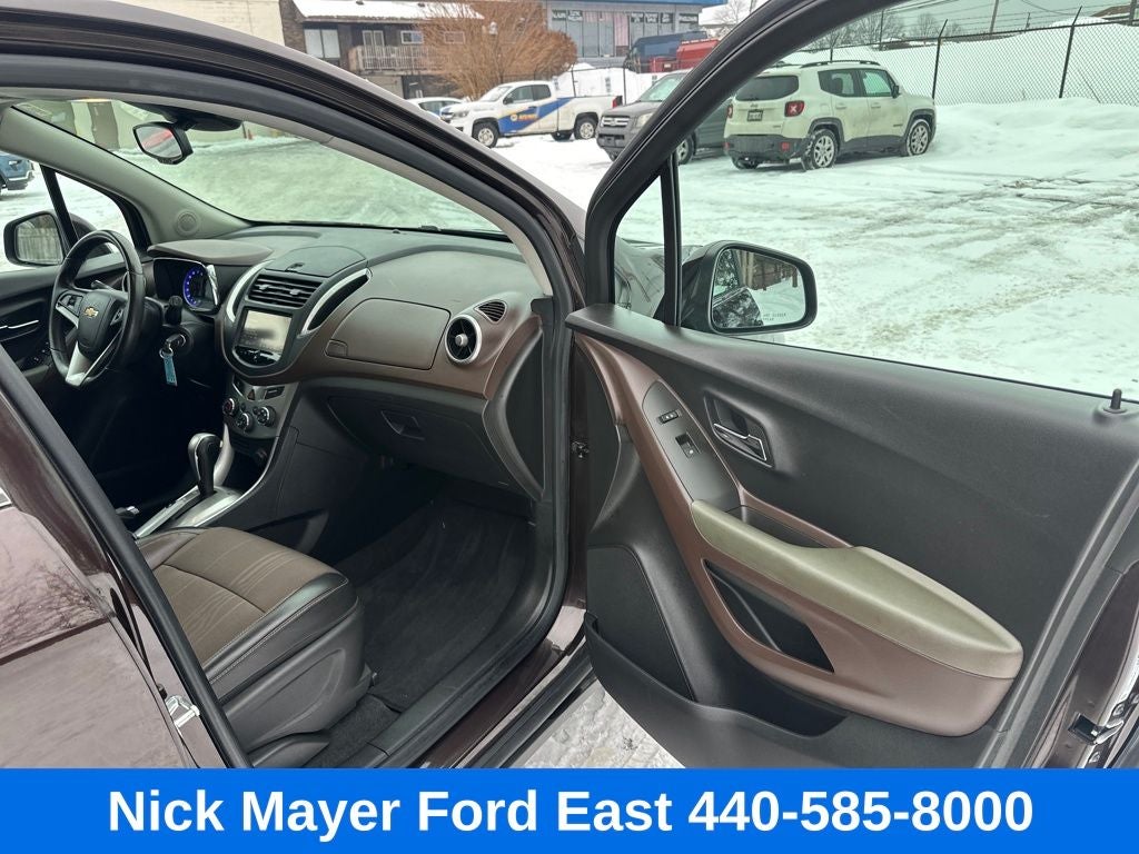 Nick Mayer Ford East Wickliffe is proud to offer this superb 2016 Chevrolet Trax in Deep Espresso Metallic This vehicle has been thoroughly inspected, ready to take home, and comes with the following features; LT Convenience Package (3-Spoke Leather-Wrapped Steering Wheel, 6-Way Power Driver Seat Adjuster, Deluxe Cloth/Leatherette Seat Trim, and Rear Park Assist w/Sensor Indicator), Preferred Equipment Group 1LT (All-Wheel Drive Chassis), 16 Aluminum Wheels, 2-Way Manual Front Passenger Seat Adjuster, 3.53 Final Drive Axle Ratio, 4-Way Manual Driver Seat Adjuster, 4-Wheel Disc Brakes, 6 Speakers, 6-Speaker Audio System Feature, ABS brakes, Air Conditioning, Alloy wheels, AM/FM radio: SiriusXM, Brake assist, Bumpers: body-color, Compass, Delay-off headlights, Deluxe Cloth Seat Trim, Driver door bin, Driver vanity mirror, Driver's Seat Mounted Armrest, Dual front impact airbags, Dual front side impact airbags, Electronic Stability Control, Emergency communication system: OnStar Guidance, Exterior Parking Camera Rear, Front anti-roll bar, Front Bucket Seats, Front Bucket Seats w/Driver Power Lumbar, Front License Plate Bracket, Front reading lights, Front wheel independent suspension, Fully automatic headlights, Heated door mirrors, Illuminated entry, Knee airbag, Low tire pressure warning, Occupant sensing airbag, Outside temperature display, Overhead airbag, Panic alarm, Passenger door bin, Passenger vanity mirror, Power door mirrors, Power steering, Power windows, Premium audio system: Chevrolet MyLink, Radio data system, Radio: Chevrolet MyLink AM/FM Stereo, Rear seat center armrest, Rear side impact airbag, Rear window defroster, Rear window wiper, Remote keyless entry, Roof rack: rails only, Security system, SiriusXM Satellite Radio, Speed control, Speed-sensing steering, Split folding rear seat, Spoiler, Steering wheel mounted audio controls, Tachometer, Telescoping steering wheel, Tilt steering wheel, Traction control, Trip computer, and Variably intermittent wipers.