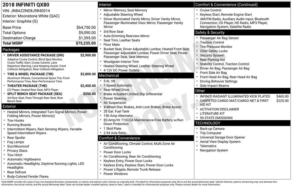 This 2018 INFINITI QX80 Base is a true testament to the brand's commitment to excellence. Experience the unparalleled combination of power, luxury, and advanced technology that this exceptional SUV has to offer. Visit our showroom today and let us demonstrate why this QX80 is the perfect addition to your lifestyle.