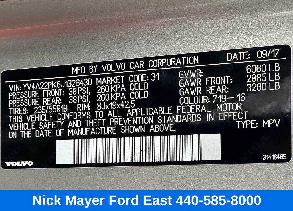 Nick Mayer Ford East Wickliffe is proud to offer this beautiful-looking 2018 Volvo XC90 in Luminous Sand Metallic This vehicle has been thoroughly inspected, ready to take home, and comes with the following features; AWD, Charcoal w/Leather Seating Surfaces w/Charcoal Interior, 3rd row seats: bucket, Air Conditioning, Alloy wheels, Brake assist, Electronic Stability Control, Exterior Parking Camera Rear, Heated Front Bucket Seats, Leather Seating Surfaces w/Charcoal Interior, Memory seat, Navigation System, Power driver seat, Power Liftgate, Power moonroof, Remote keyless entry, Speed-sensing steering, Wheels: 19 10-Spoke Turbine in Silver Bright, 10 Speakers, 4-Wheel Disc Brakes, A/V remote, ABS brakes, AM/FM radio: SiriusXM, Anti-whiplash front head restraints, Apple CarPlay/Android Auto, Auto High-beam Headlights, Auto-dimming door mirrors, Auto-dimming Rear-View mirror, Automatic temperature control, Bumpers: body-color, Delay-off headlights, Driver door bin, Driver vanity mirror, Dual front impact airbags, Dual front side impact airbags, Emergency communication system: Volvo On-Call, Four wheel independent suspension, Front anti-roll bar, Front Bucket Seats, Front Center Armrest w/Storage, Front dual zone A/C, Front fog lights, Front reading lights, Fully automatic headlights, Heated door mirrors, Heated front seats, Illuminated entry, Knee airbag, Leather Shift Knob, Low tire pressure warning, Occupant sensing airbag, Outside temperature display, Overhead airbag, Panic alarm, Passenger door bin, Passenger vanity mirror, Power door mirrors, Power passenger seat, Power steering, Power windows, Premium audio system: Sensus Connect, Radio data system, Radio: High Performance Audio System, Rain sensing wipers, Rear air conditioning, Rear anti-roll bar, Rear dual zone A/C, Rear fog lights, Rear Parking Sensors, Rear reading lights, Rear seat center armrest, Rear window defroster, Rear window wiper, Roof rack: rails only, Security system, Speed control, Split folding rear seat, Spoiler, Steering wheel mounted audio controls, Tachometer, Telescoping steering wheel, Tilt steering wheel, Traction control, Trip computer, Turn signal indicator mirrors, and Variably intermittent wipers.