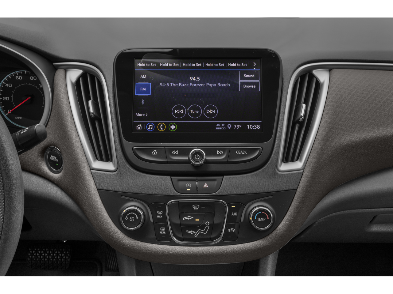 - Audio system, Chevrolet Infotainment 3 system, 8" diagonal color touchscreen, AM/FM stereo. Additional features for compatible phones include: Bluetooth audio streaming for 2 active devices, voice command pass-through to phone, Apple CarPlay and Android Auto capable.