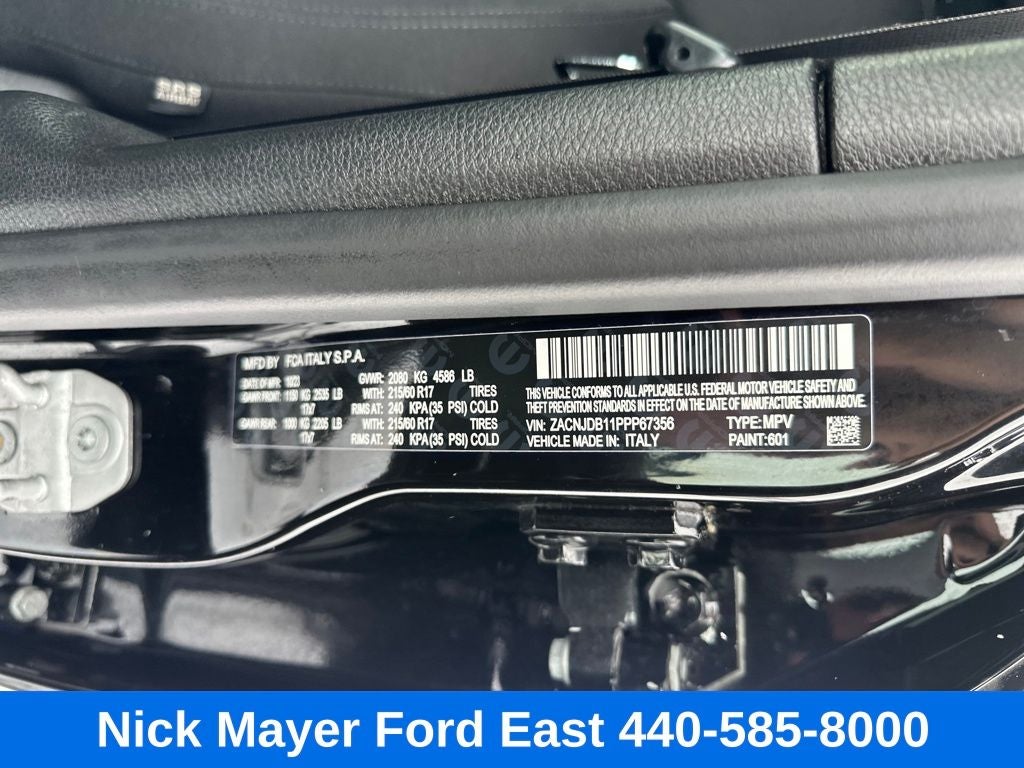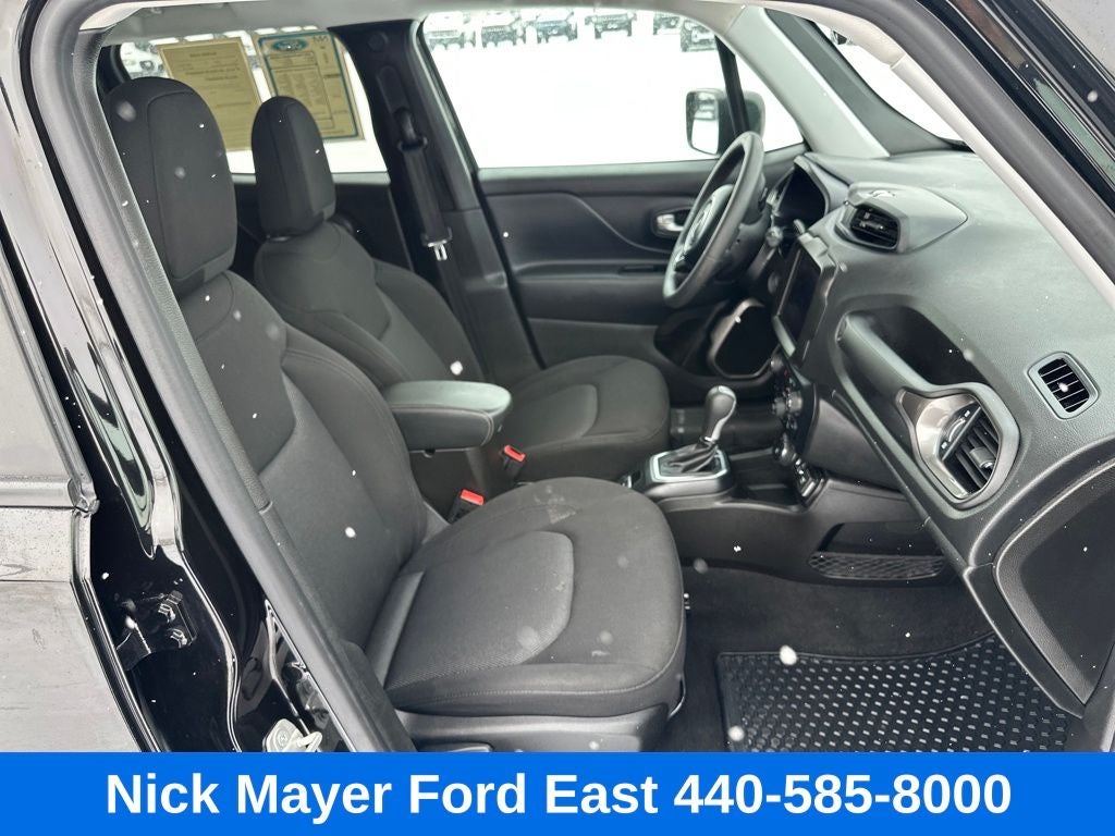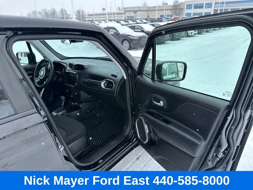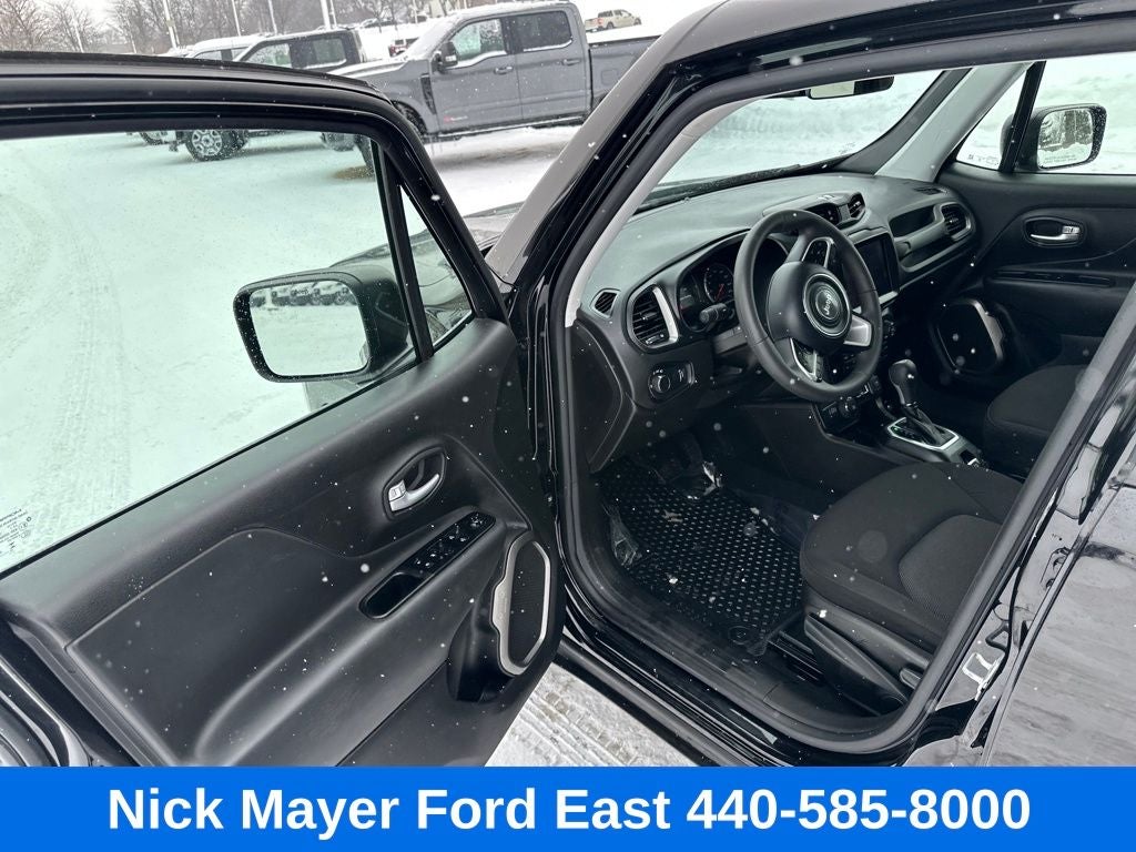 Nick Mayer Ford East Wickliffe is proud to offer this beautiful 2023 Jeep Renegade in Black This vehicle has been thoroughly inspected, ready to take home, and comes with the following features; 17 x 7.0 Aluminum Wheels, 3.734 Final Drive Ratio, 4-Wheel Disc Brakes, 6 Speakers, ABS brakes, Air Conditioning, Alloy wheels, AM/FM radio: SiriusXM, Anti-whiplash front head restraints, Apple CarPlay/Android Auto, Automatic temperature control, Brake assist, Cloth Bucket Seats, Compass, Delay-off headlights, Driver door bin, Driver vanity mirror, Dual front impact airbags, Dual front side impact airbags, Electronic Stability Control, Emergency communication system: SiriusXM Guardian, Four wheel independent suspension, Front anti-roll bar, Front Bucket Seats, Front Center Armrest, Front dual zone A/C, Front reading lights, Heated door mirrors, Illuminated entry, Knee airbag, Low tire pressure warning, Navigation System, Normal Duty Suspension, Occupant sensing airbag, Outside temperature display, Overhead airbag, ParkView Rear Back-Up Camera, Passenger door bin, Passenger vanity mirror, Power door mirrors, Power steering, Power windows, Radio data system, Radio: Uconnect 4C Nav w/8.4 Display, Rear anti-roll bar, Rear window defroster, Rear window wiper, Remote keyless entry, Roof rack: rails only, Security system, Speed control, Split folding rear seat, Spoiler, Steering wheel mounted audio controls, Tachometer, Telescoping steering wheel, Tilt steering wheel, Traction control, Trip computer, Variably intermittent wipers, and Voltmeter.