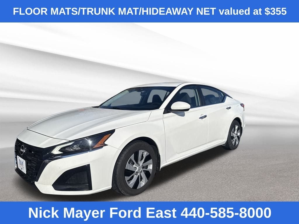 Nick Mayer Ford East Wickliffe is proud to offer this beautiful 2023 Nissan Altima in Glacier White This vehicle has been thoroughly inspected, ready to take home, and comes with the following features; CVT with Xtronic, 4-Wheel Disc Brakes, 6 Speakers, ABS brakes, Air Conditioning, AM/FM radio, Auto High-beam Headlights, Body-Colored Splash Guards, Brake assist, Bumpers: body-color, Cloth Seat Trim, Delay-off headlights, Driver door bin, Driver vanity mirror, Dual front impact airbags, Dual front side impact airbags, Electronic Stability Control, Floor Mats/Trunk Mat/Hideaway Net, Four wheel independent suspension, Front anti-roll bar, Front Bucket Seats, Front Center Armrest, Front reading lights, Fully automatic headlights, Illuminated entry, Knee airbag, Low tire pressure warning, Occupant sensing airbag, Outside temperature display, Overhead airbag, Overhead console, Panic alarm, Passenger door bin, Passenger vanity mirror, Power door mirrors, Power steering, Power windows, Radio data system, Radio: AM/FM Audio System, Rear anti-roll bar, Rear Parking Sensors, Rear reading lights, Rear seat center armrest, Rear side impact airbag, Rear window defroster, Remote keyless entry, Security system, Speed control, Speed-sensing steering, Speed-Sensitive Wipers, Split folding rear seat, Steering wheel mounted audio controls, Tachometer, Tech Spec Change, Telescoping steering wheel, Tilt steering wheel, Traction control, Trip computer, Variably intermittent wipers, and Wheels: 16 x 7 Steel w/Full Wheel Covers.