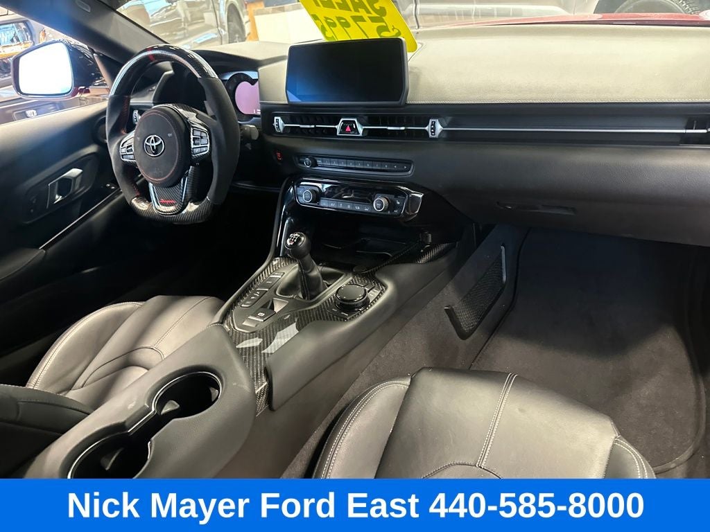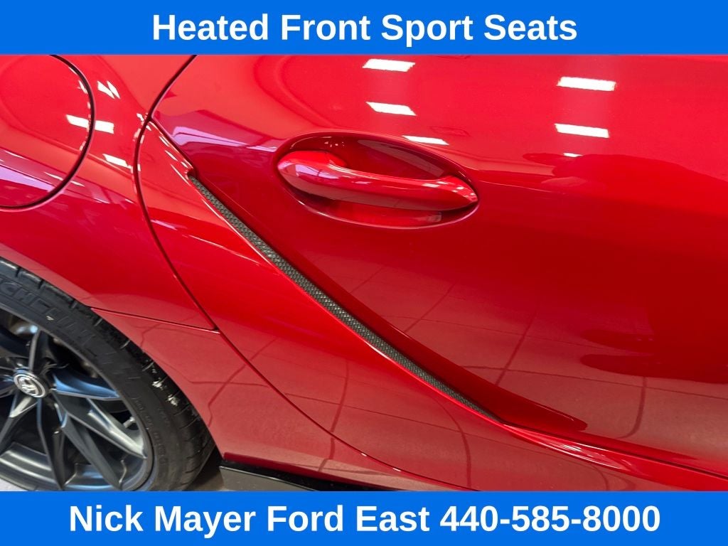Nick Mayer Ford East Wickliffe is proud to offer this handsome 2023 Toyota GR Supra in Red This vehicle has been thoroughly inspected, ready to take home, and comes with the following features; ABS brakes, Alloy wheels, Electronic Stability Control, Front dual zone A/C, Heated door mirrors, Heated front seats, Heated Front Sport Seats, Illuminated entry, Leather Seat Trim, Low tire pressure warning, Navigation System, Remote keyless entry, Traction control, 12 Speakers, 4-Wheel Disc Brakes, Adaptive suspension, Air Conditioning, AM/FM radio: SiriusXM, Apple CarPlay, Auto High-beam Headlights, Auto-dimming door mirrors, Auto-dimming Rear-View mirror, Automatic temperature control, Brake assist, Bumpers: body-color, Child-Seat-Sensing Airbag, Delay-off headlights, Driver door bin, Driver vanity mirror, Dual front impact airbags, Dual front side impact airbags, Emergency communication system: Supra Connect (4-year trial), Exterior Parking Camera Rear, Four wheel independent suspension, Front anti-roll bar, Front Bucket Seats, Front Center Armrest, Front fog lights, Front reading lights, Full Color Head-Up Display (HUD), Fully automatic headlights, Garage door transmitter: HomeLink, Knee airbag, Leather Shift Knob, Leather steering wheel, Memory seat, Occupant sensing airbag, Outside temperature display, Overhead airbag, Panic alarm, Passenger door bin, Passenger vanity mirror, Power door mirrors, Power driver seat, Power passenger seat, Power steering, Power windows, Radio data system, Radio: AM/FM w/500W JBL HiFi Surround Sound System, Rain sensing wipers, Rear anti-roll bar, Rear window defroster, Red Supra Logo, Security system, Speed control, Speed-sensing steering, Speed-Sensitive Wipers, Steering wheel mounted audio controls, Tachometer, Telescoping steering wheel, Tilt steering wheel, Trip computer, Turn signal indicator mirrors, Variably intermittent wipers, and Wheels: 19 Forged Aluminum.