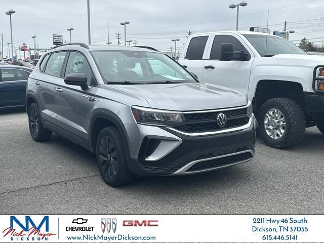 Nick Mayer Chevy Buick GMC of Dickson is proud to offer this terrific-looking 2024 Volkswagen Taos in White This vehicle has been thoroughly inspected, ready to take home, and comes with the following features; 3.23 Axle Ratio, 4-Wheel Disc Brakes, 6 Speakers, ABS brakes, Active Blind Spot Monitor, Air Conditioning, Alloy wheels, AM/FM radio, Auto High-beam Headlights, Brake assist, Bumpers: body-color, Cloth Seating Surfaces, Compass, Delay-off headlights, Driver door bin, Driver vanity mirror, Dual front impact airbags, Dual front side impact airbags, Electronic Stability Control, Emergency communication system: VW Car-Net Safe & Secure 5-year, Exterior Parking Camera Rear, Front anti-roll bar, Front Bucket Seats, Front Center Armrest, Front reading lights, Front Strut Rear Torsion Beam Suspension, Front wheel independent suspension, Fully automatic headlights, Heated steering wheel, Illuminated entry, Leather Shift Knob, Low tire pressure warning, Occupant sensing airbag, Outside temperature display, Overhead airbag, Overhead console, Panic alarm, Passenger door bin, Passenger vanity mirror, Power door mirrors, Power steering, Power windows, Radio data system, Radio: Composition Color AM/FM, Rain sensing wipers, Rear anti-roll bar, Rear seat center armrest, Rear window defroster, Rear window wiper, Remote keyless entry, Roof rack: rails only, Speed control, Speed-sensing steering, Split folding rear seat, Spoiler, Steering wheel mounted audio controls, Tachometer, Telescoping steering wheel, Tilt steering wheel, Traction control, Trip computer, Variably intermittent wipers, and Wheels: 17 Silver Painted Alloy.